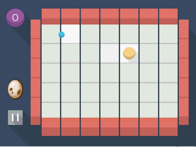 Premiestňujte blok na ploche tak, aby odrážal guličku smerom k väčšej guličke. Navyše ju nesmiete nechať spadnúť z plochy. Ovládanie: myš.